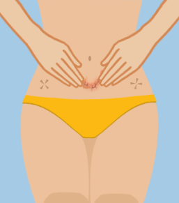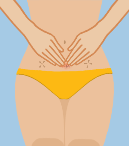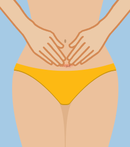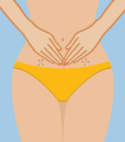 Cup your fingers and press down on the sides of your pubic bones, then push upwards to lift your organs, and hold it there.