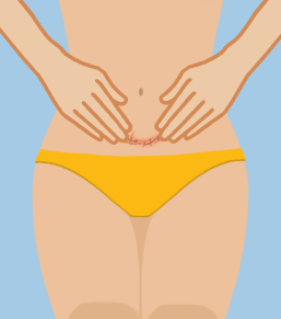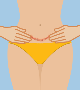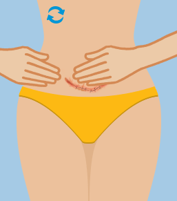 Following this, massage the area around your scar with circular motions, going from one hip bone to hip bone.