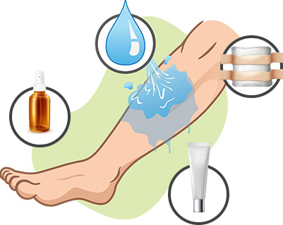 Regularly sterilise your burn with antiseptic until the wound dries completely.