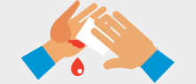 When you get a cut, the first thing to do is to stop the bleeding. Press down on the wound with a clean cloth or tissue, and if it is on your arm or leg, position the limb higher than your heart to reduce blood flow. If bleeding does not stop, you should immediately go to the hospital. You should also go to the hospital if the wound is deep or gaping open, has dirt or debris that won't come out, feels numb, is caused by an animal or human bite, or if you have not had a tetanus shot in the past five years.1
