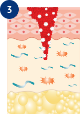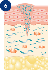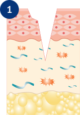 The water loss activates fibroblasts, which rapidly produce collagen to rebuild the injured area.2